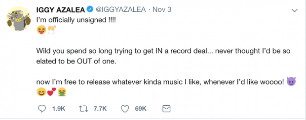 A oferta veio após Iggy Azalea anunciar via Twitter que havia se separado da Island Records e livre para liberar qualquer tipo de música que quisesse.