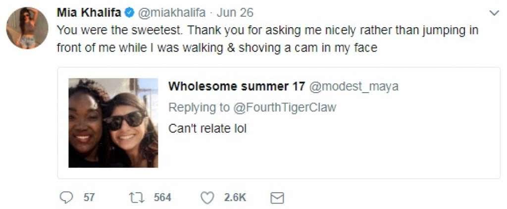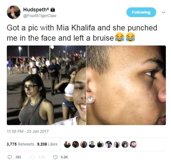 O fã postou depois em seu twitter que a tentativa de enquadramento, colocando Mia Khalifa na foto, sem sua permissão, ocasionou a agressão.
