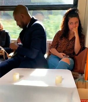 No Brasil o povo não tem lugar pra colocar o pé, quanto mais uma mesa do corredor do metrô.